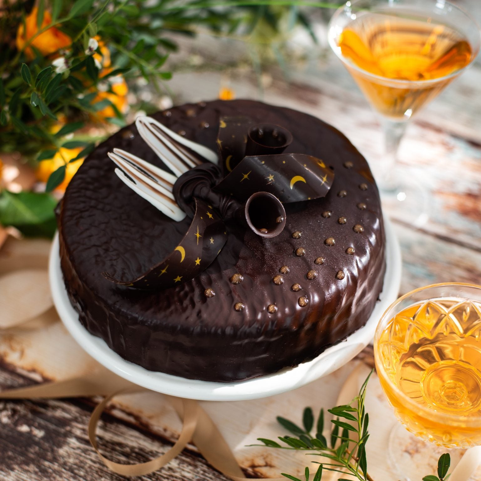 Gaišā biskvīta torte ar gardu riekstu krēmu, atsvaidzinošu aprikožu pildījumu un šokolādes glazūru.